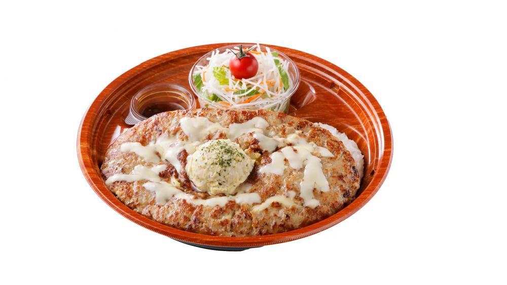 通常の3倍の量のポテトサラダととろけるチーズを使用した、ポテサラバケットディッシュファンには夢のような新メニュー。ハンバーグの上にもトッピングされていて、食べ応え抜群です。