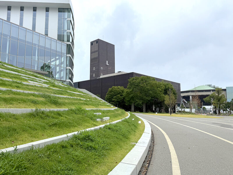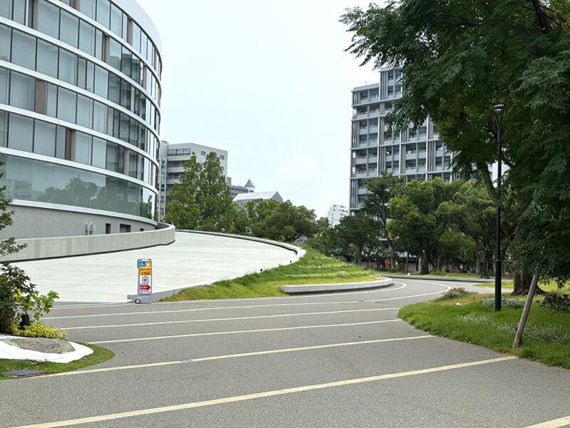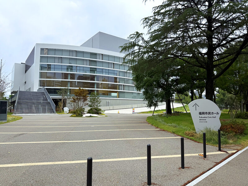 須崎公園に入ると、今年3月に開業した「福岡市民ホール」が姿を表します。