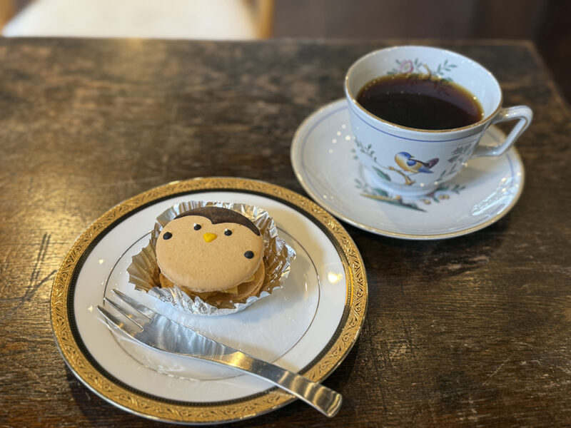 トゥンカロンは、写真の「すずめ画伯のトゥンカロン(コーヒーチョコ)」と「夢野久作トゥンカロン(黒ごまクリーム)」の2種類から選べます。