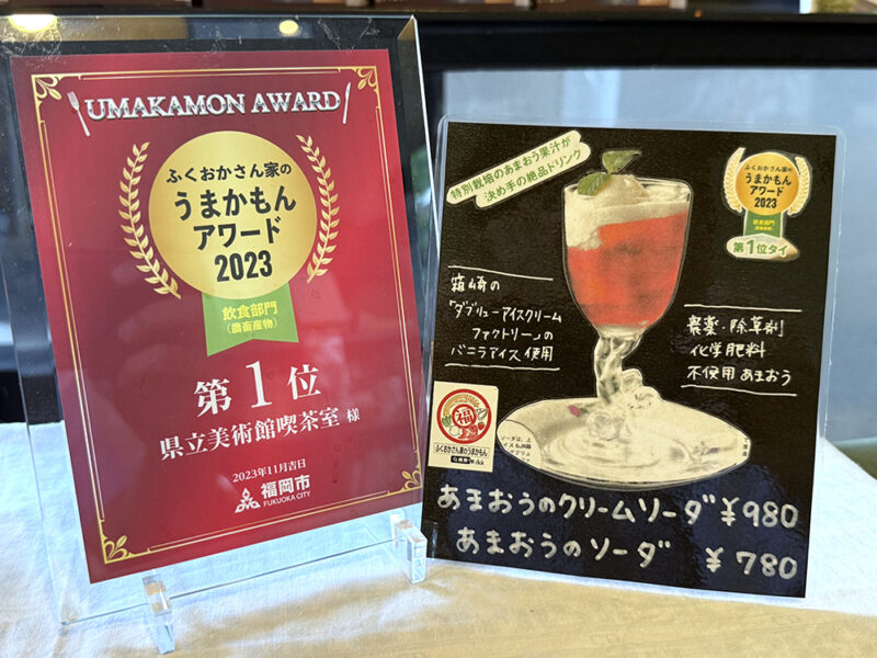 そのほか、「ふくおかさん家のうまかもんアワード2023」の飲食部門で第1位を受賞し、特別栽培のあまおう果汁を使用した「あまおうのソーダ(780円)」「あまおうのクリームソーダ(980円)」も人気ですよ!