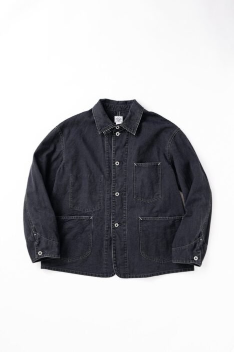 顔料を使って生地の表面を染めるピグメントダイにより、独特の風合い仕上がった1着。随所に大戦下でのアメリカのワークウエアの特徴をもつ。6万6000円(ポストオーバーオールズ中目黒TEL03-6303-2160)