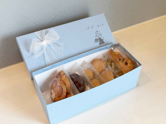 お店のイメージカラーのブルーグレーとロゴマークがすごく可愛くて、こんな手土産だと持っていく前から喜ばれる顔を想像してニヤついてしまいそうです。