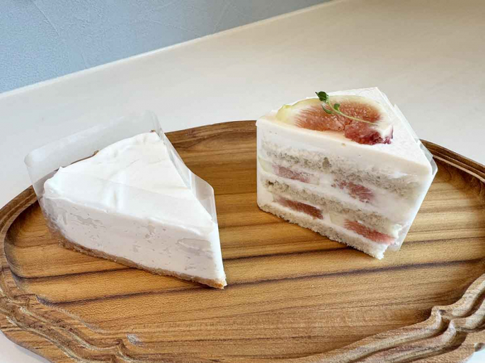 こちらは北海道産のクリームチーズを使用し、火入れにこだわりとろっとした食感に仕上げた「チーズケーキ」と北海道産の生クリームと旬のいちじく、砂糖はきび糖が使用されていて優しい甘さの「季節のショートケーキ」。このほかにも平飼い卵、奄美諸島のきび糖を使用して作る「トロっとプリン」など魅力的なケーキばかりです。