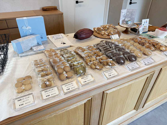 焼き菓子はオーガニックのチョコレートやココナッツ、国産の抹茶などを使用したクッキーがありました。
