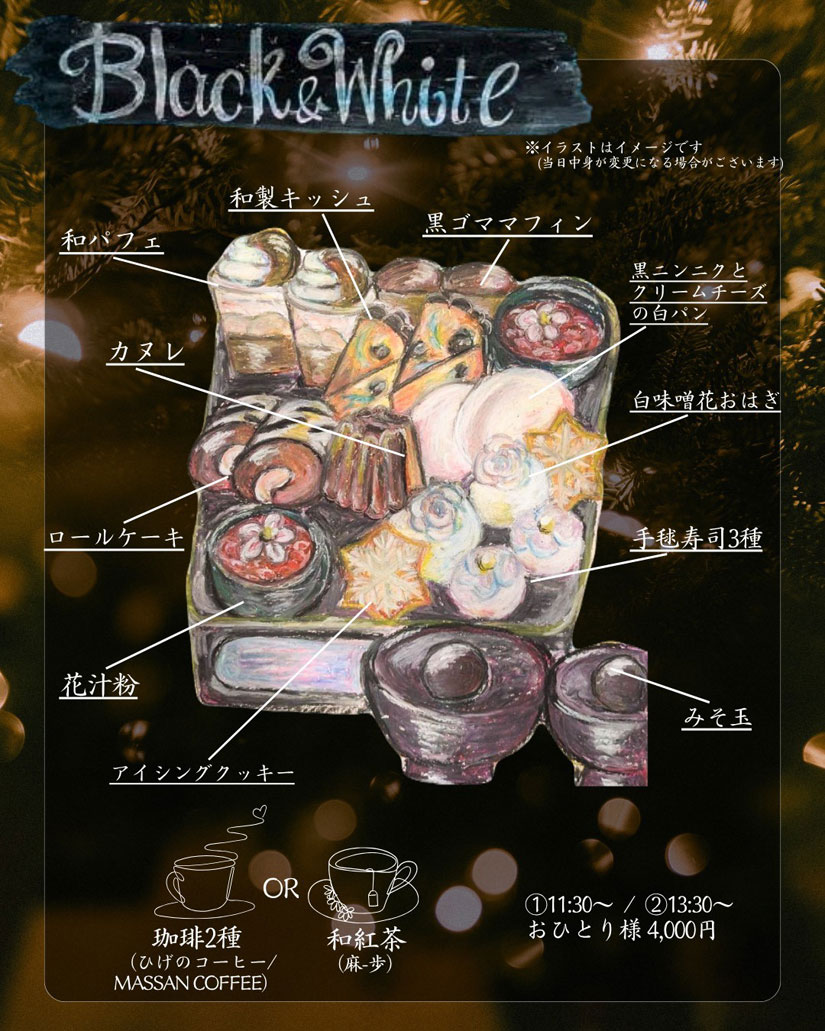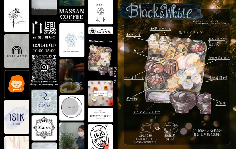 12/14(日)「整う・余白・シンプル」を五感で味わう『BLACK & WHITE』マルシェ開催!黒ゴママフィンや和栗キッシュなどの「和フタヌーンティー」も@長野県須坂市