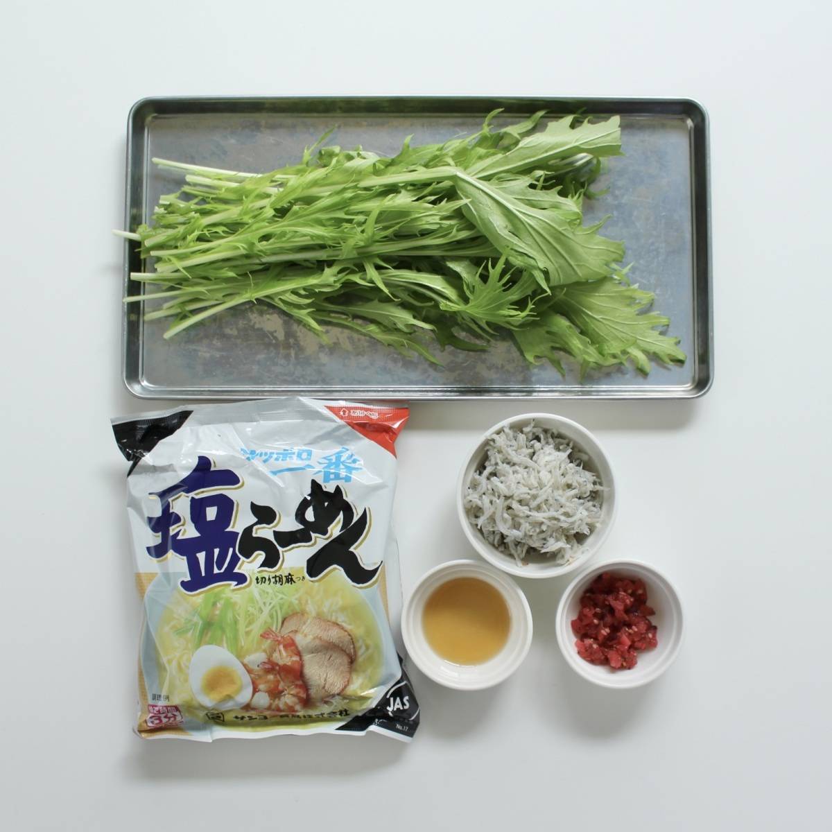 サッポロ一番公式の「たっぷり水菜とカリカリしらすの塩ラーメン」のレシピ