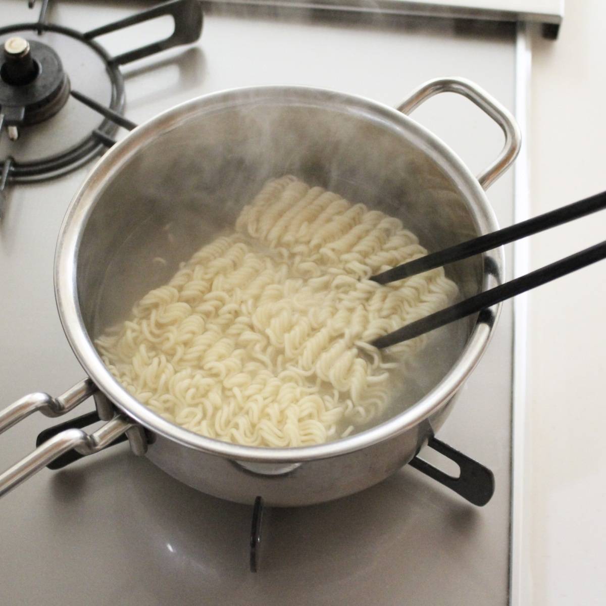 サッポロ一番(塩)を表示どおりに作って、器に盛ります。
