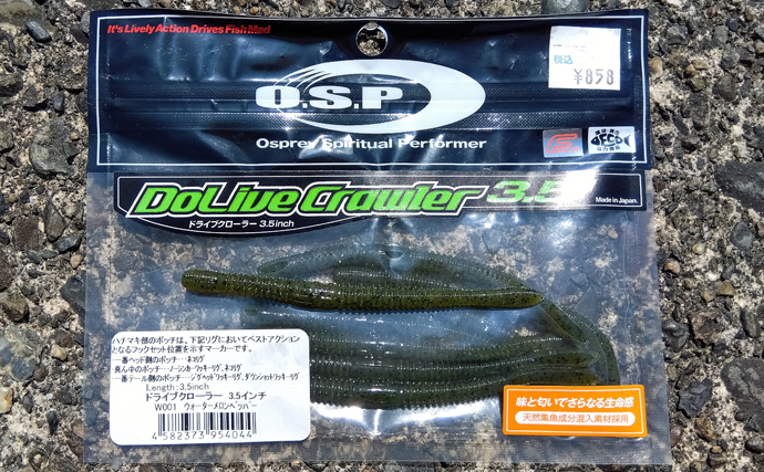 シュウトくんの初バス釣りを飾るべく、釣り仲間にソフトベイトについて、おんぶにだっこで教えてもらいました。まずはOPSのドライブクローラー3.5inch。