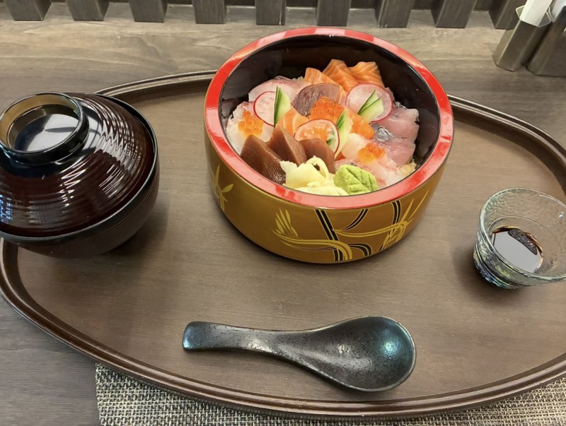 この日いただいたのは、ランチ限定の海鮮丼定食セット(A$48)