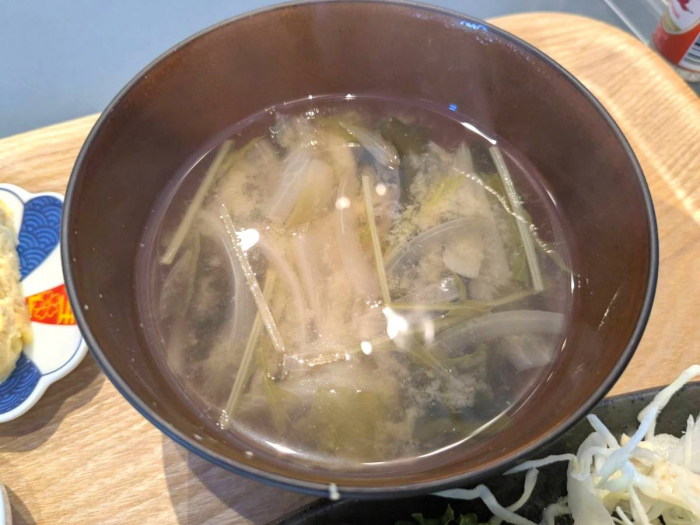 まずは身体を温めようとお味噌汁からいただくと、玉ねぎの柔らかでとろっとした食感と優しい出汁の味わいに心がほっとしました。