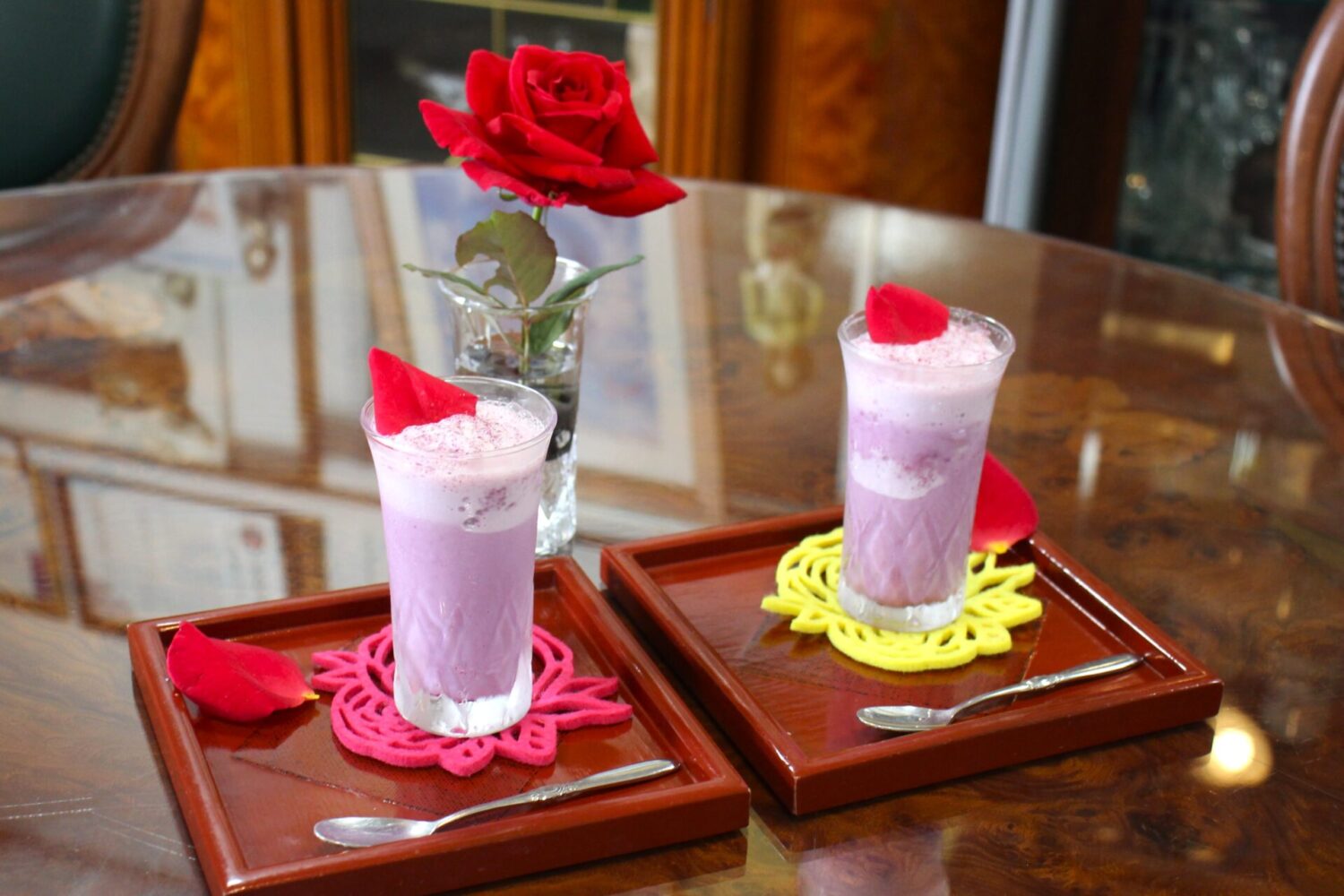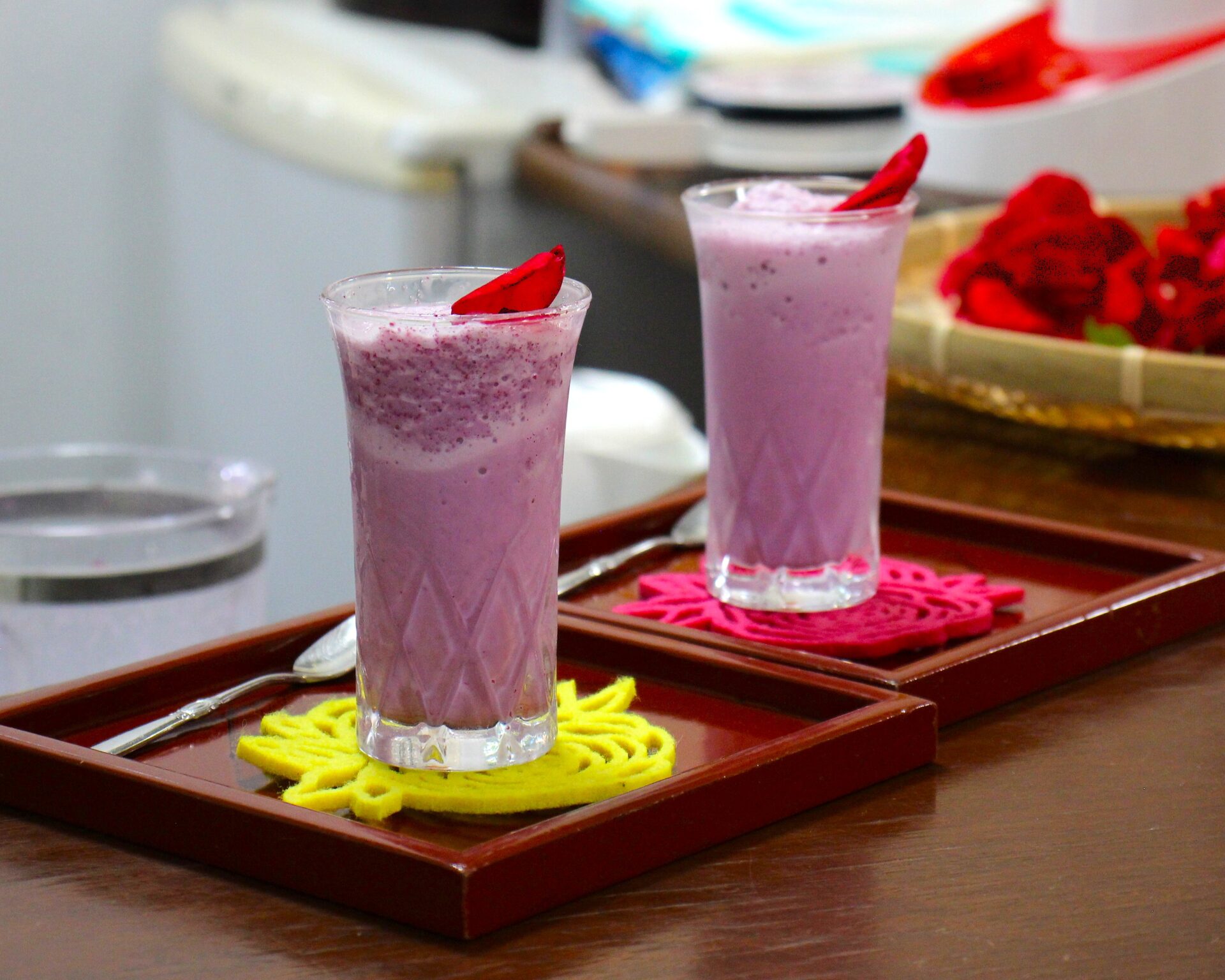摘んだばかりの花びらを使ったスムージーは色合いも美しく、見ているだけでぜいたくな気分です。