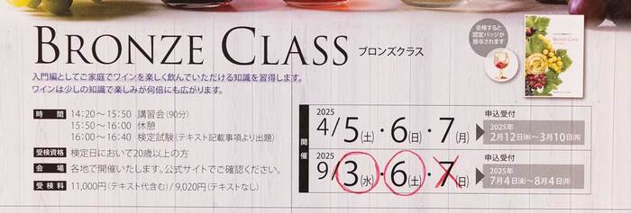 ブロンズクラスは入門編として家庭でワインを楽しく飲むための知識習得を目標としています。