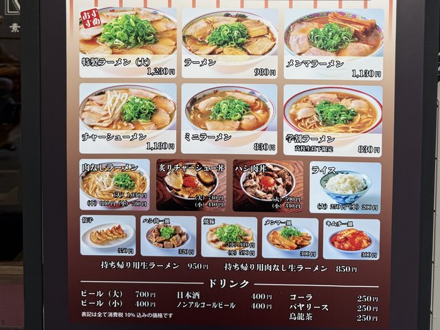ラーメンはシンプルに1種類。そこにチャーシュー増しやミニ、肉なしなどのバリエーションがあります。