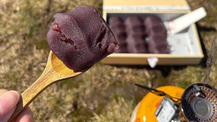 立ち寄ったのは『権現茶屋』さん。炭火焼きのごま団子が人気です!今回は『江戸甘味噌だんご』(500円)を注文!うるち米を使っていてモチモチ柔らか食感で、味噌の甘じょっぱさがペコペコのお腹を満たしてくれます。