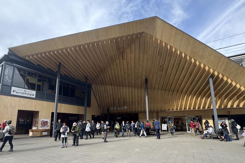 『高尾山口駅』に到着したのは2025年11月11日の9:00。駅前にはすでに多くの登山客達が待ち合わせをしています。