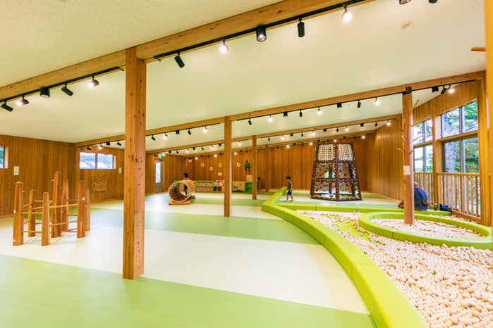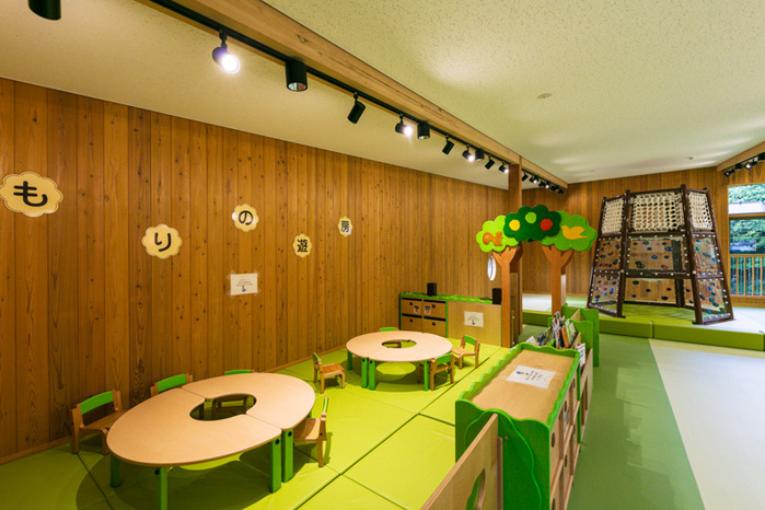 「あいうえお学舎」2階には、室内遊び場「もりの遊房」。