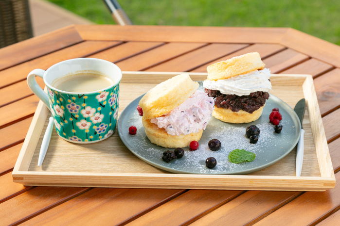 しっとりパンケーキに、ミックスベリーやチョコホイップ、ツナマヨなどの具材をたっぷり挟んだ、見た目も可愛すぎる一品です。
