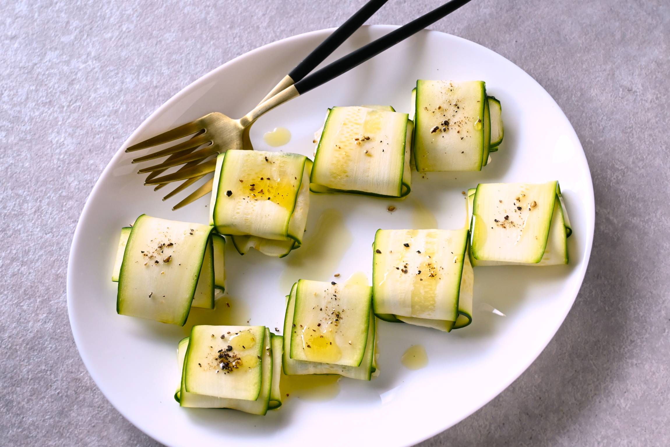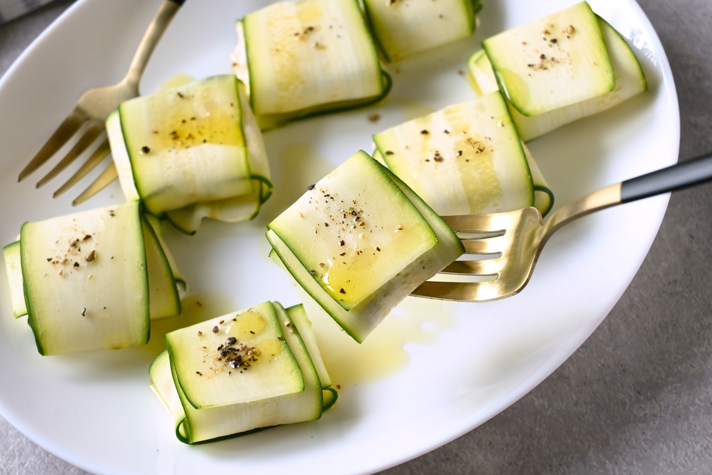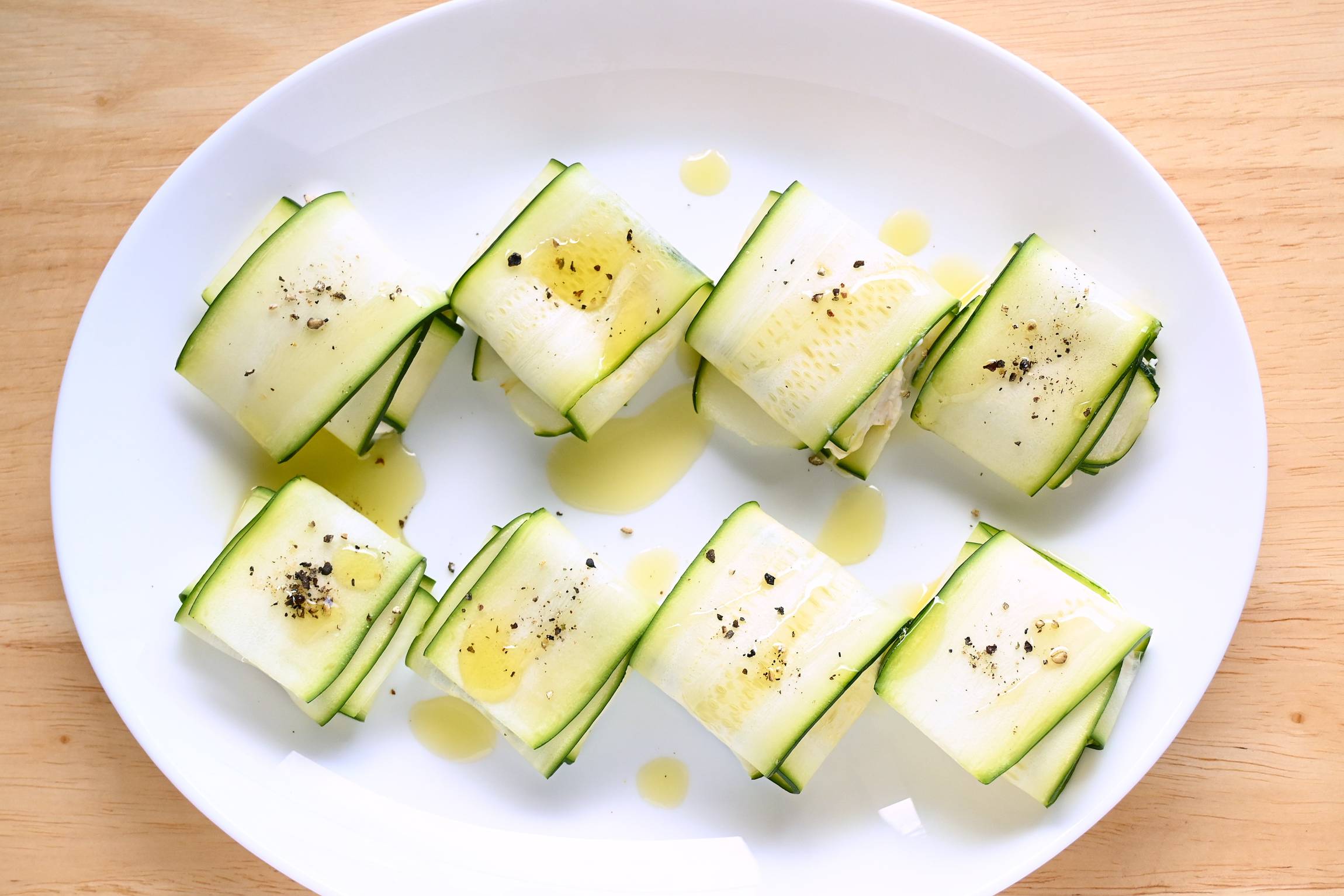 ズッキーニは、中心に近い幅広の部分を使うときれいに仕上がります。