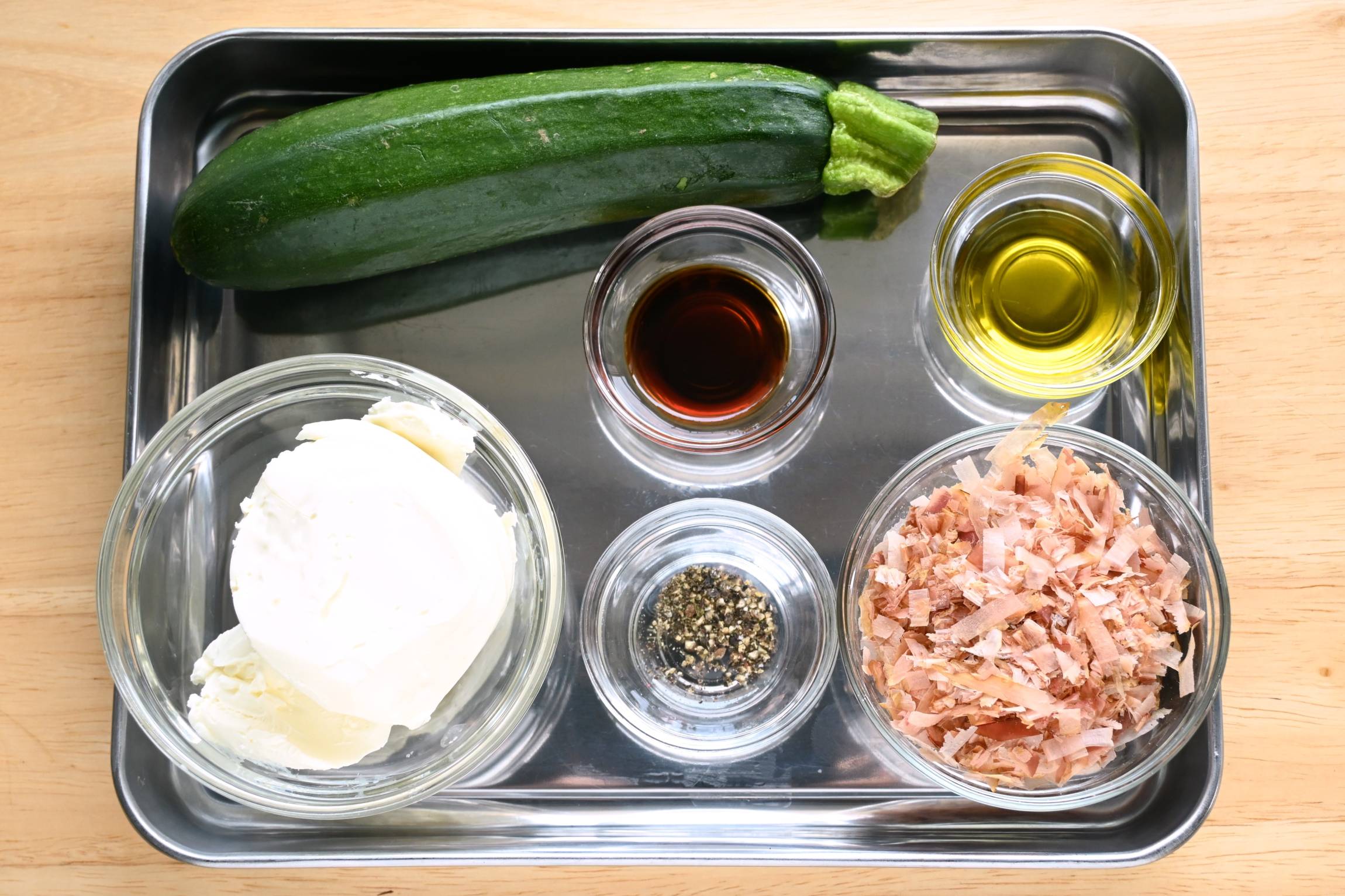かつおぶし香る。ズッキーニのクリームチーズ包み