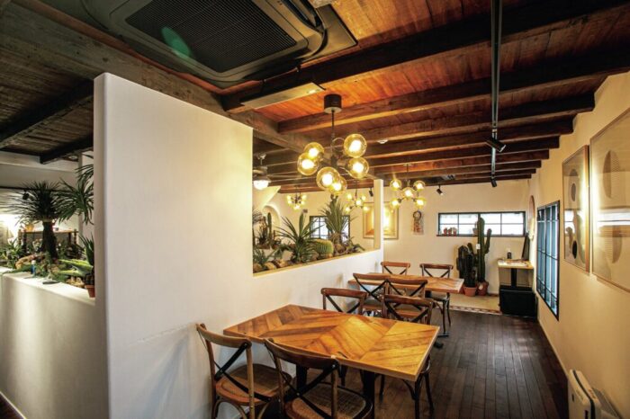 ゆっくり寛げる2階のテーブル席。中央には植栽があり、カリフォルニアのような開放的や空間が広がっている。朝8時からオープンしているため、朝食目当ての外国人客も多いという。これはありがたい!