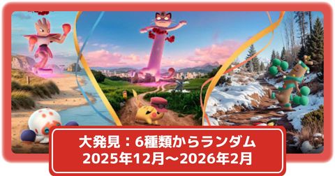 ポケモンGOのフィールドリサーチで7日間スタンプを貯めたら貰える「大発見」の報酬で、2025年12月~2026年2月に手に入るポケモンが発表されました。