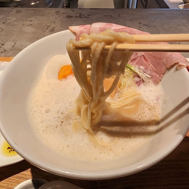 で、相方の貝出汁そばにはバジル風味のオイルが、ワタシ注文の鶏白湯そばには胡椒オイルが付いていて、途中で味変出来る仕組み。いやー、最後までなかなか大満足でした。 そんなに激混雑店ではなく、そこそこいいお値段なのですが、我々的には京都の昔ながら中華そば店よりも大分好き!という感想。 面白い期間限定メニューを色々やられているので、また、やってくると思います! ご馳走様でした。