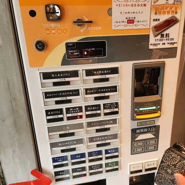 外に出ている看板を見ると、相方ご所望の貝出汁そばがスタンバイ。こういうのでイイよね!と店内に。