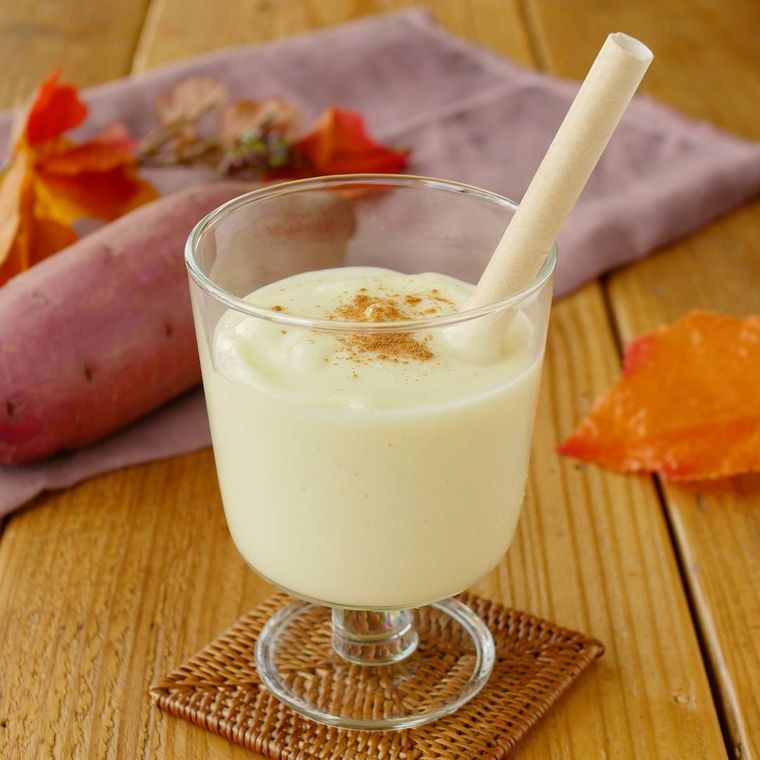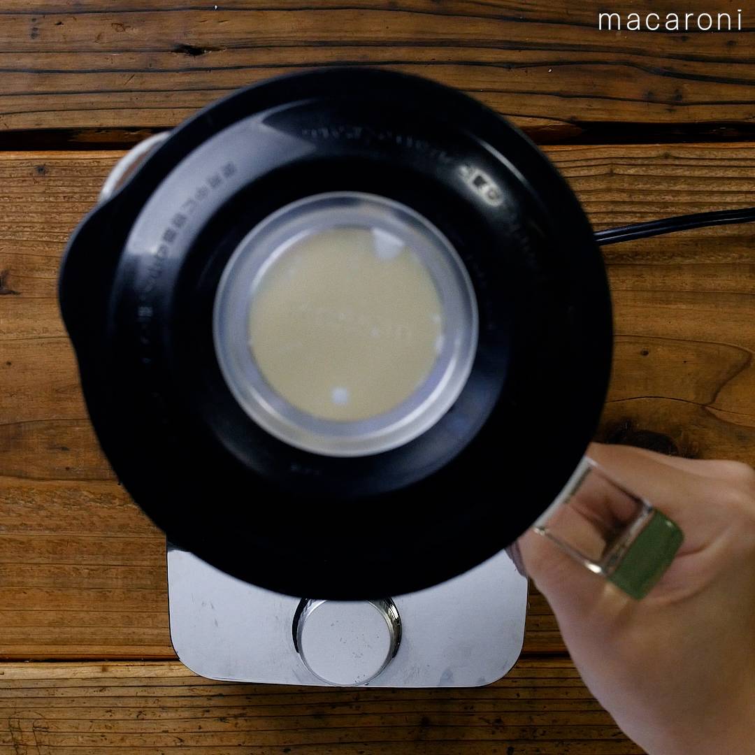 3: 粗熱がとれたらミキサーにさつまいも、はちみつ、牛乳、氷を入れて撹拌します。