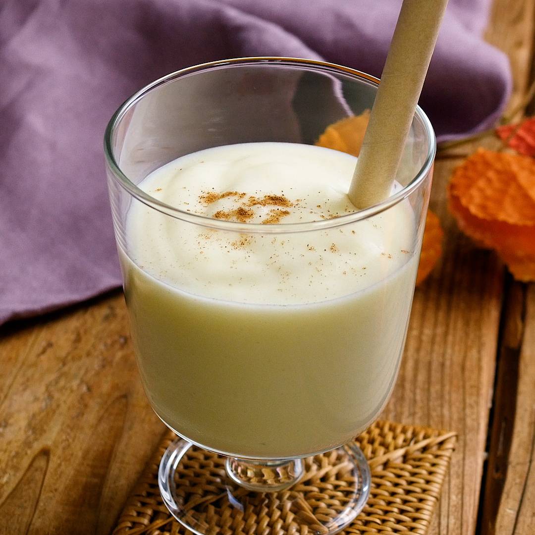 4: グラスに注ぎ入れ、お好みでシナモンパウダーをふって完成です。