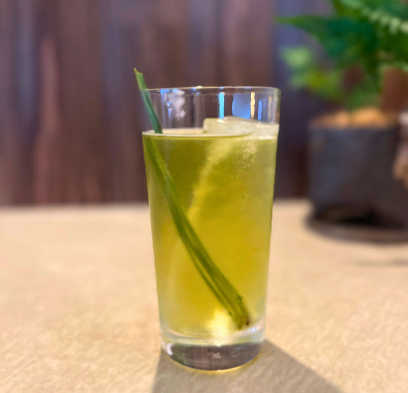 天龍村の煎茶を漬け込んだジンをトニックウォーターで割った同店のオリジナルカクテル。