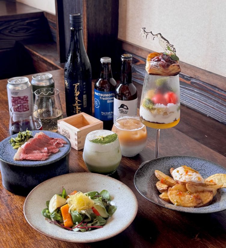 長野県松本市、蔵の街として知られる中町にて、信州の食材を使った食事やスイーツ、地酒、信州ワインなどのお酒などを気軽に楽しめる「MATSUMOTO PUBLIC HOUSE(マツモト パブリックハウス)」が2025年11月4日(火)にオープン。フレンチ出身で、信州料理家の竹下さんがつくる料理やドリンクは、すべて長野県産の食材が1種類以上使われているというこだわり。どの時間帯でも全メニューのオーダーが可能で、ランチやディナーはもちろん、カフェタイムや昼飲みなどそれぞれに合った楽しみ方が可能です。伝統的な蔵を改築したパブで信州の恵みを味わって。