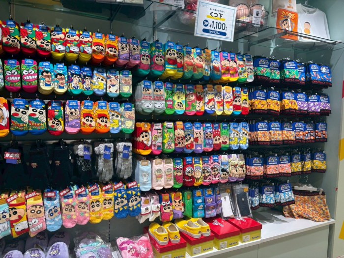 靴下だけでも何種類あるのかと思うほどの品揃えで、推しキャラがいる人はきっと財布のひもがゆるむはずだ。