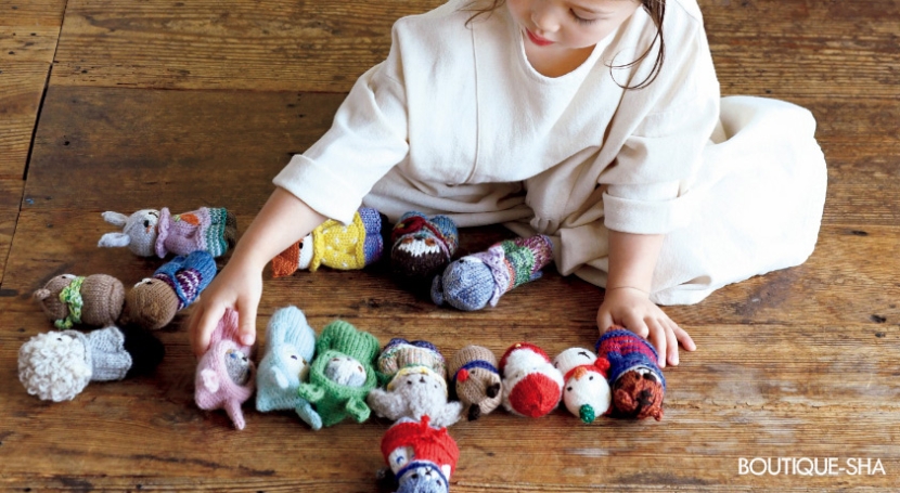 見た目は繊細ですが、棒針(輪針)でぐるぐると編み進めるだけなので、想像よりずっと簡単に仕上がるのも嬉しいポイント。中にわたを詰め、首や手足の部分を絞るだけで、まるで物語から飛び出してきたようなかわいいお人形が完成します。