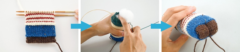 「難しそう…」と思う方もご安心を。キットは作り方が付いているもの、またはツムギコウボウさんの著書『ツムギコウボウが編む 棒針編みのあみぐるみ』(ブティック社刊)や作品掲載誌『AMIGURUMI LIFE あみぐるみライフ』(ブティック社刊)に対応しており、編み方や編み方図はそちらで確認することができます。基本的な編み方は写真プロセスやイラストで丁寧に解説しているのでそちらをご参考ください。棒針編み初心者さんでも、編み方を覚えればスムーズに進められます。