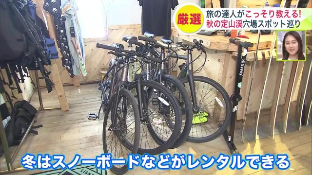 夏はサップやレンタサイクル、冬はスノーボードなどのレンタルをしている外遊び体験施設の中にあります。