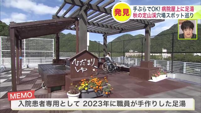 外に出られない入院患者さんのために温泉でリラックスしてもらいたいという思いから、職員が手作りしたのが源泉100%の足湯「ひだまり湯」。