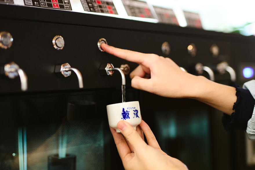 さらに店頭で販売されている、各酒蔵のおちょこ(300円~)での利き酒もできます。欲しいおちょこを購入して、カップを使うときと同じ要領でサーバーからお酒を注いでみましょう。使ったおちょこは、持ち帰ることができます。