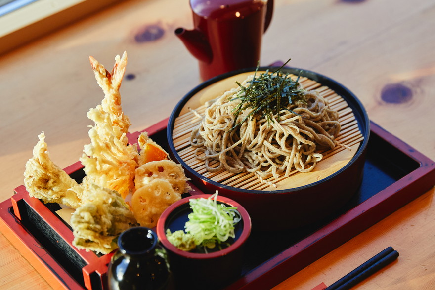「天ざるそば」(2050円)。約25年の板前経験がある現店主が考案したメニューだ。