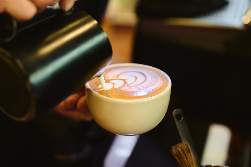 散策のお供には、「カフェラテ」をどうぞ。ブラジル・インドネシア・ケニアの豆をバランスよく配合したブレンドコーヒーと、まろやかなミルクの風味がほっと安らぐ味わいが魅力です。繊細なラテアートにも、気分が高まります。