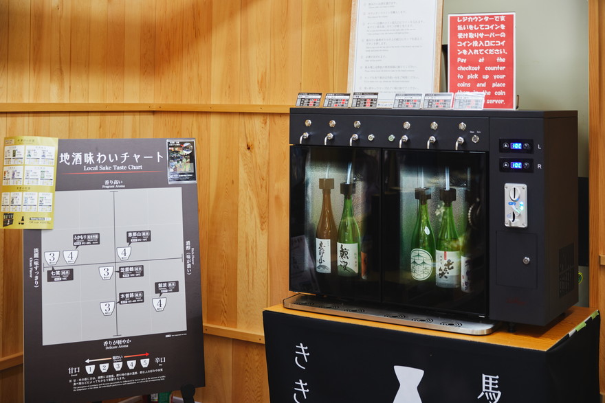もう1カ所は、中津川駅前の「にぎわい特産館」の1階にある「にぎわいきき酒処 SAKE STAND」。こちらでは、12種類のお酒を用意しています。