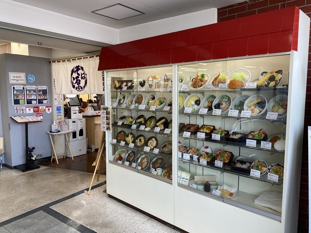 入口の横にあるショーケースには、食品サンプルが並んでいて、昭和の食堂といった懐かしい雰囲気です。