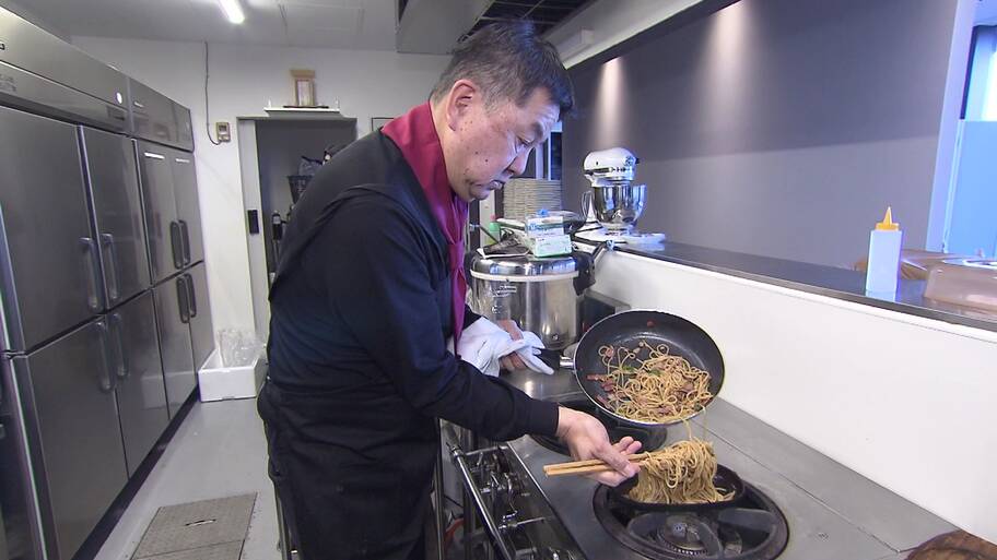 会場にはライブキッチンもあって、フライパン調理が必要な冷凍食品を調理してくれるんです。