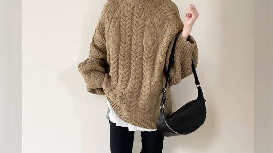 オーバーサイズのプリントニットを合わせると、おしゃれでカジュアルに着こなせます。