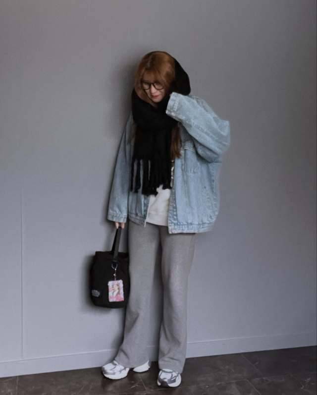 【11月編】ダサ見えしないグレーパンツコーデ③デニムジャケットを羽織る♪