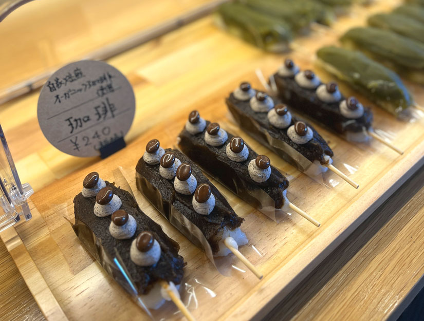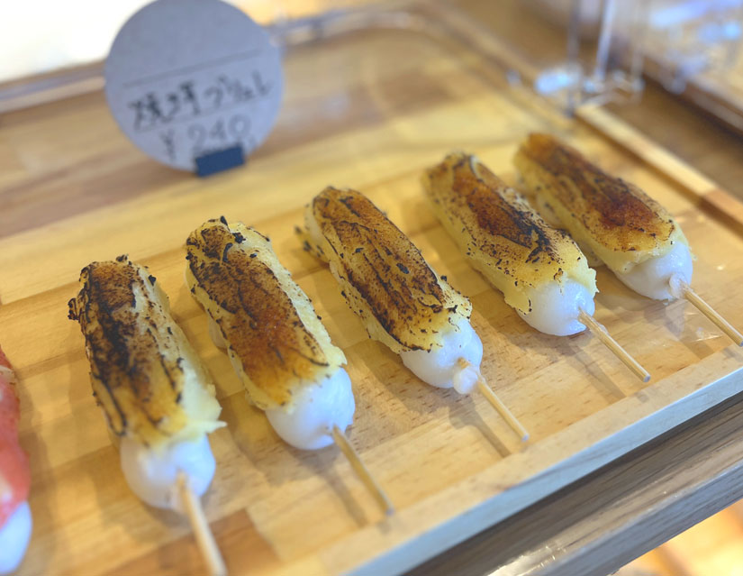 「八十八だんご」の魅力は、長野県飯山市産「金崎さんちのお米」と水だけで作る完全無添加のもっちもちのお団子です。長野市の店舗では、長野限定の12種類を含む、約18種類を販売。全店共通の定番人気は「みたらし」「こしあん」に加え、「くるみ味噌」は老舗「すや亀」の味噌を使用した長野オリジナル。そして長野限定メニューには「珈琲」「栗あん」「黒蜜きな粉」「明太チーズ」「焼き味噌七味」など、多彩なメニューも登場。