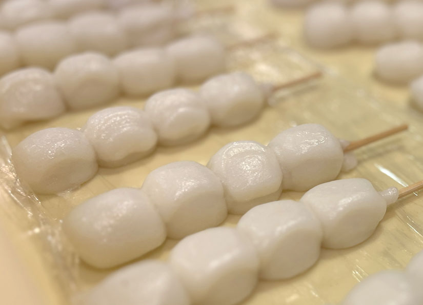 こだわったのは、"弾力がありやわらかいお団子”。パン職人たちが開発に1年を要し、たどり着いたのが米粉や餅粉を使わず「米と水」だけを使い、蒸して練り上げるというシンプルな製法。そして、それを実現させた米が、長野県飯山市の皇室献上米としての実績がある「金崎さんちのお米」。このお団子は生産者である金崎さんにも納得いただいた味なのだそう。