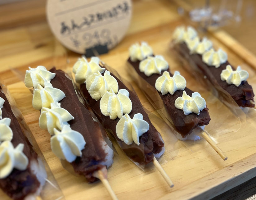 「年齢を問わず、安心・安全でカラダにやさしい無添加生地です」と代表の熊原さん。熊原さんはもともとあんことお餅が大好物。その熊原さんが商品化させたお米の美味しさを存分に堪能できるお団子です。