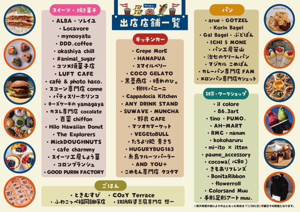 11月16日(日)は「久留米百年公園」で『O.Y.A.T.S.Uフェス4』が開催されます。福岡中の“おやつ”70店舗以上が集結します。