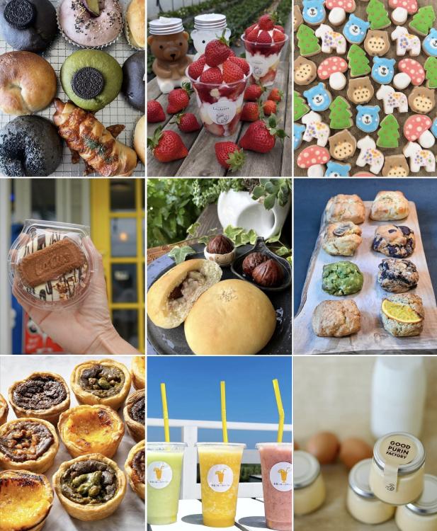パンやドーナツ、パフェ、クレープ、ケーキに焼菓子。甘~いスイーツはもちろん、ハンバーガーやタコス、おにぎり、唐揚げなどお昼ごはんにもぴったりなグルメも♪