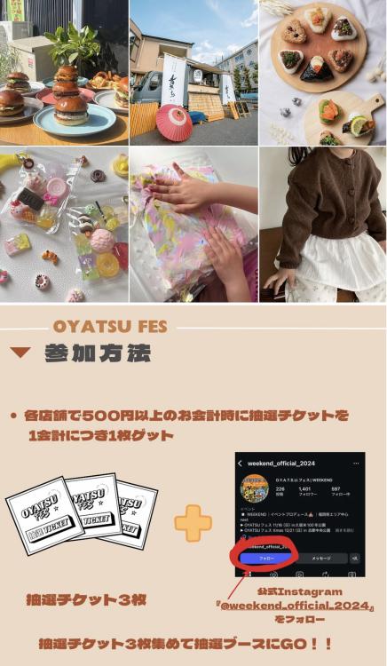 子どもが楽しめるワークショップや、話題の韓国子ども服、ハンドメイド雑貨も並びます。おいしい!かわいい!たのしい!が詰まった1日。家族みんなで“おやつ時間”を過ごしてくださいね。